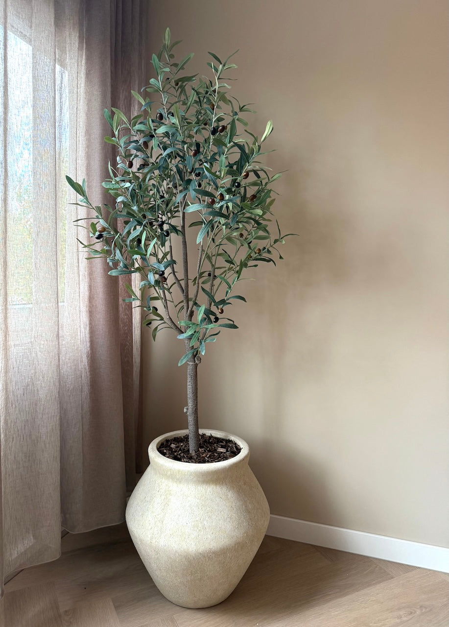 Of je nu op zoek bent naar een prachtige olijfboom voor in je woonkamer, een stijlvolle toevoeging voor je kantoor, of een groen vleugje sfeer in de hal, deze olijfboom voegt een mediterrane sfeer toe aan elke ruimte.